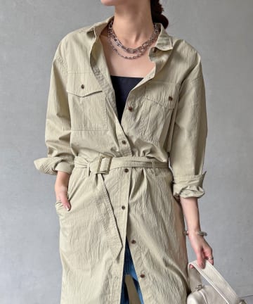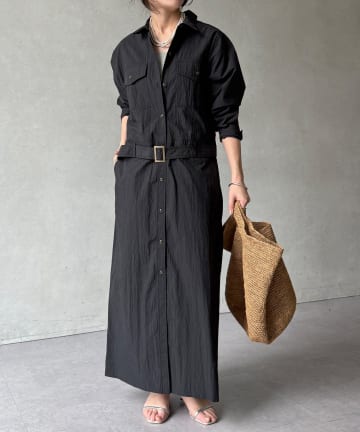 【WEB限定】ワイヤーカラーロングシャツワンピース