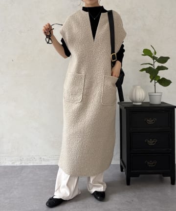 シャギーベスト×ニットワンピース