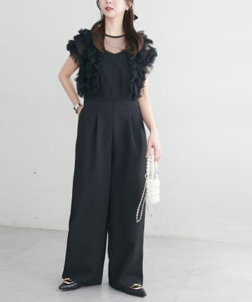 【SALON by Chico】パール付きドッキングタックボリュームワンピース
