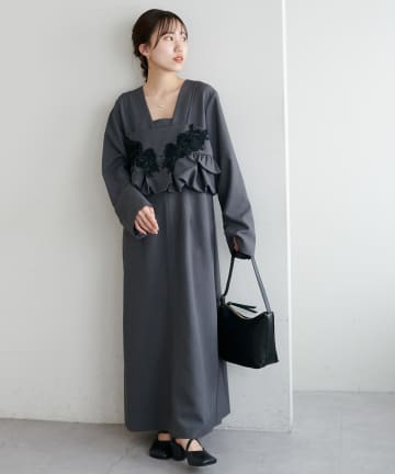 【WEB限定/2サイズ展開/低身長サイズ】カットレースギャザーワンピース