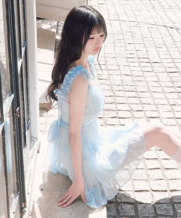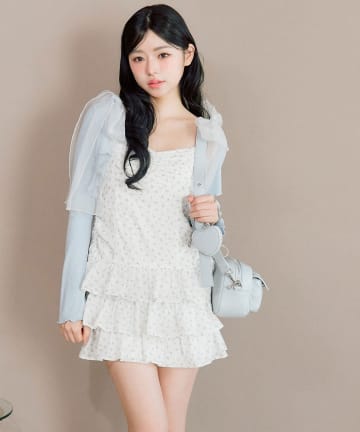 【MOMO】シアーフリルビスチェレイヤードキャミドレス