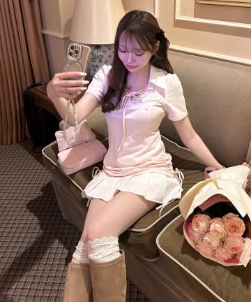 【インフルエンサー企画】keru レイヤード風着痩せミニワンピ