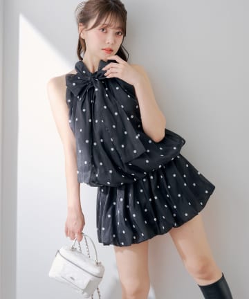 【Black Ribbon Collection】異素材バルーンミニワンピース