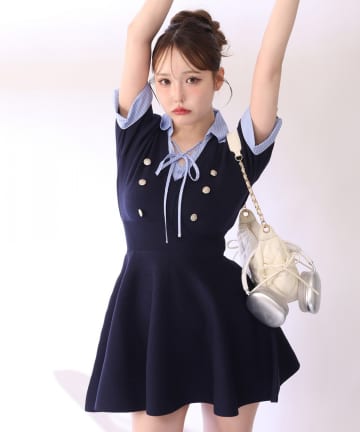【neutral by ciaopanic】セーラーカラーシャツティアードミニワンピース