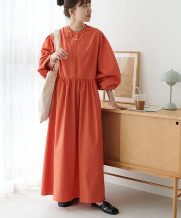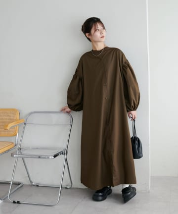 【新色追加!/WEB限定】スタンドカラー袖ボリュームワンピース
