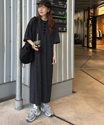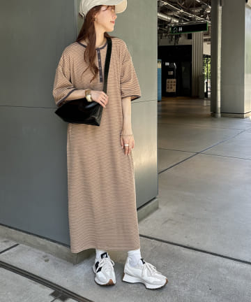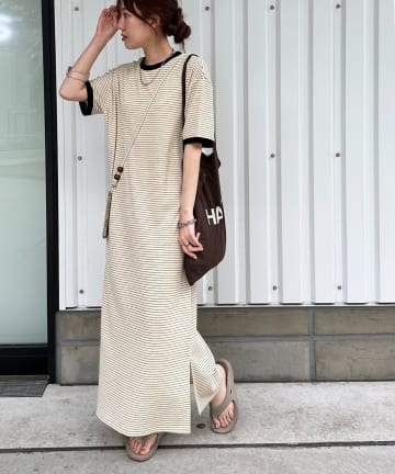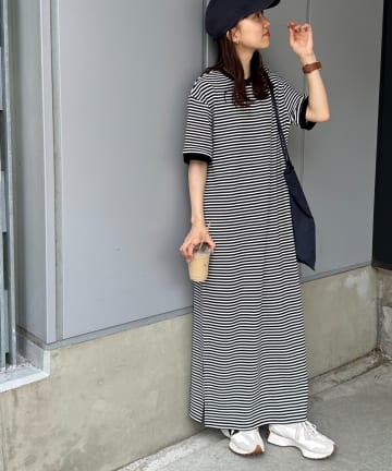 クルーネックロングカットワンピース