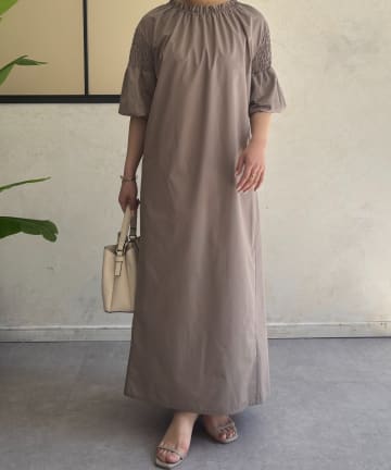 モックネックシャーリングワンピース