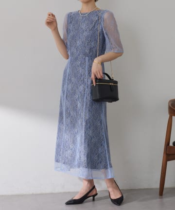 【オケージョン】ラメフラワーコードレースワンピース
