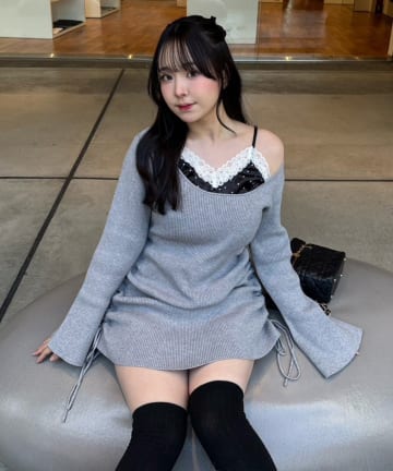 【omiyu企画】レースサテンキャミSETニットミニワンピ
