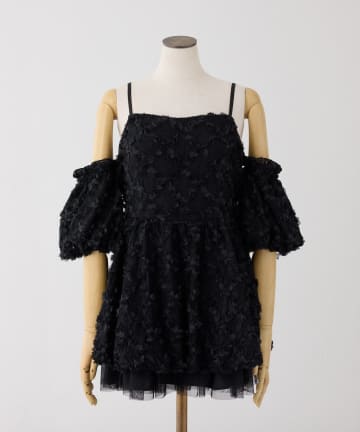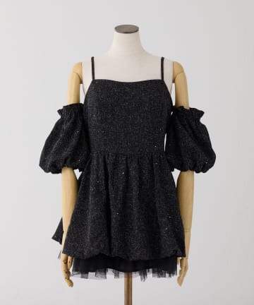 【Black Ribbon Collection】異素材バルーンミニワンピース