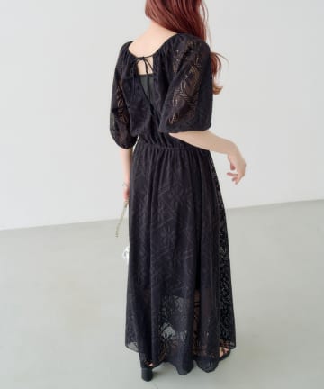 【オケージョン】グラフィカルリーフレースワンピース