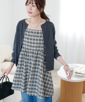 【WEB・一部店舗限定/前後2WAY】格子フェザーチュニック