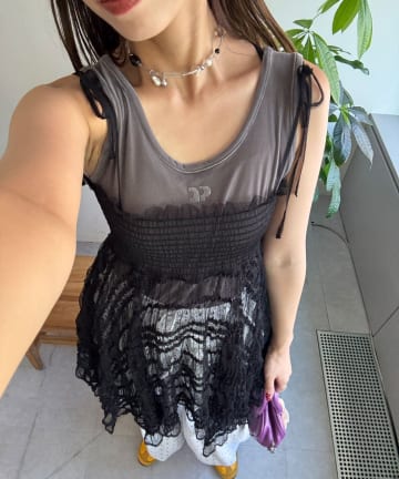 【レーヤードスタイルにも使える◎】シアーレースキャミチュニック