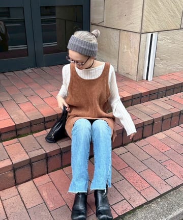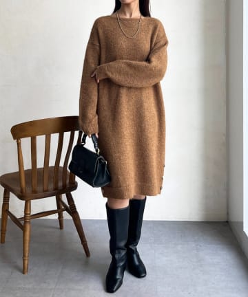 【PON企画】スタイルアップ前後2wayモールニットキャミチュニック