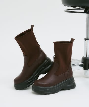 【yomo企画】ストレッチ厚底ミドルブーツ