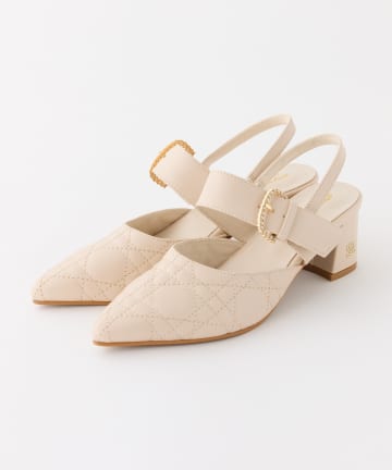 ビジューバックルキルティングミュール