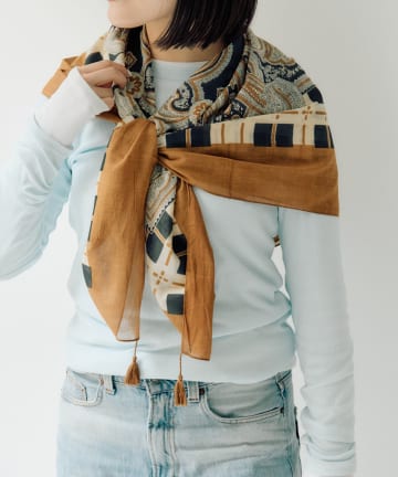 チェック×ペイズリー柄ストール