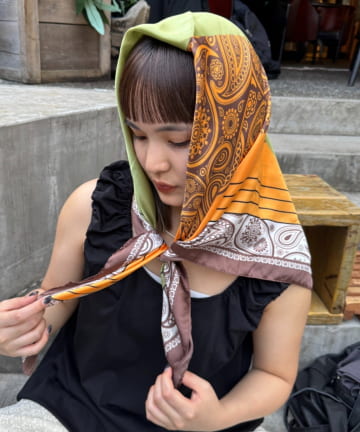 【こなれ感をプラス】シルクパターンスカーフ