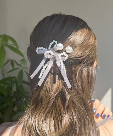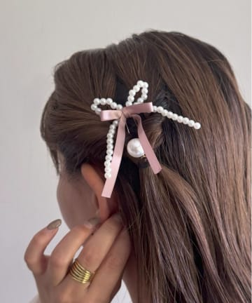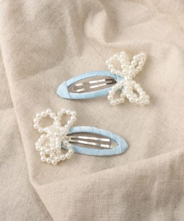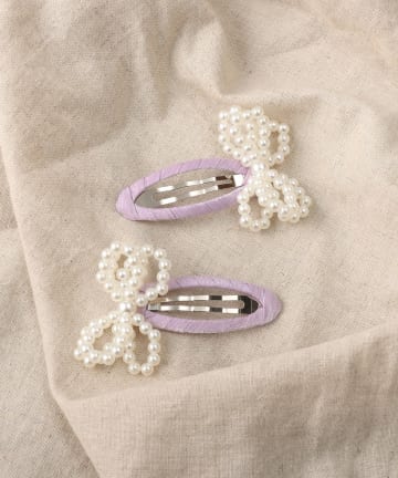パールリボンパッチンピン2個セット/KIDS