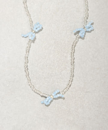 リボンビーズショートネックレス