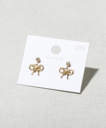 パーツ付ラインリボンピアス