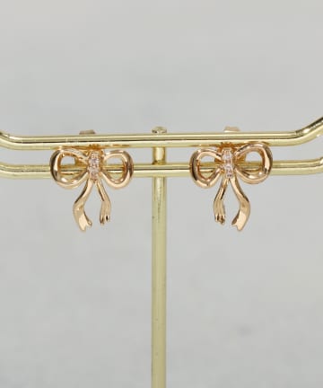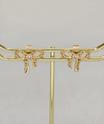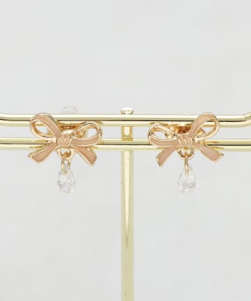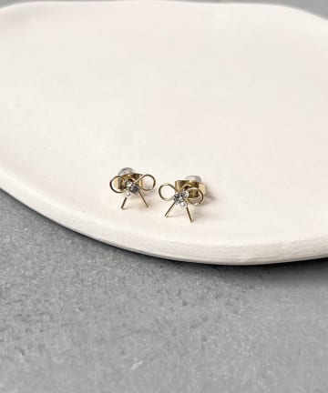 ストーンリボンワンタッチピアス