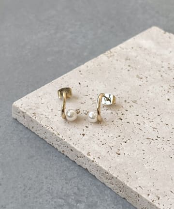 スパイラルメタルパールピアス