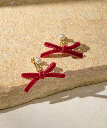 【オケージョン】ベロアリボンイヤリング