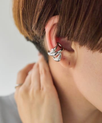 《スターリングシルバー使用》バイカラー花輪イヤーカフ