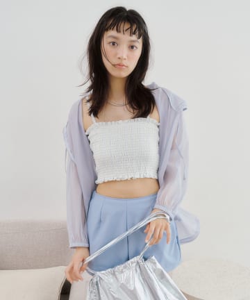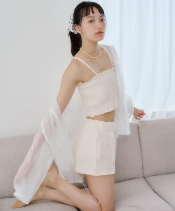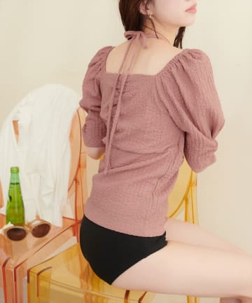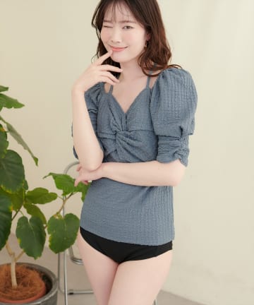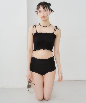 swimwear/シャーリングオフショル+バルーンミニスカート(3点セット)