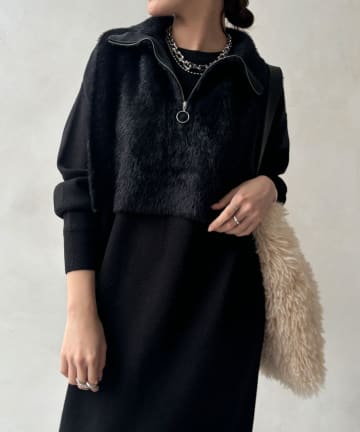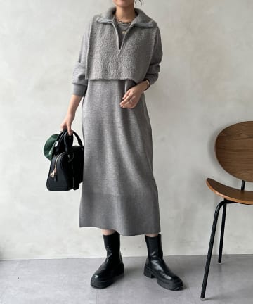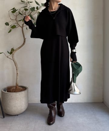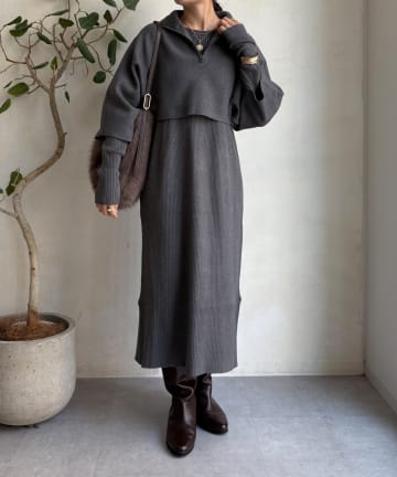 【WEB限定】フロントファースナープルオーバー+リブニットワンピースセット
