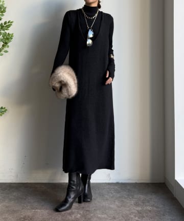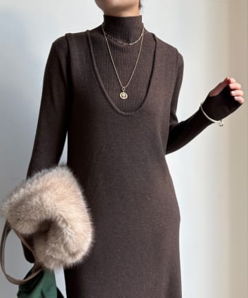 【WEB限定】リブニット+Uネックニットワンピースセット