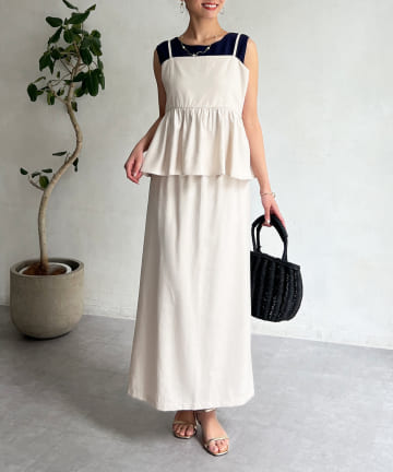 【着回し力抜群】【大人かわいく体型カバー】キャミペプラム×タイトスカート