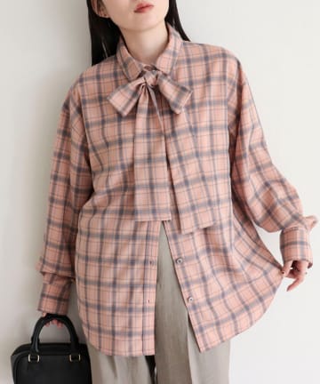 【neutral】ギンガムチェックパフスリーブリボンブラウス