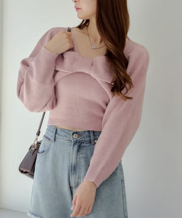 女子力UP【RMAF】リボンモチーフハーフスリーブニット