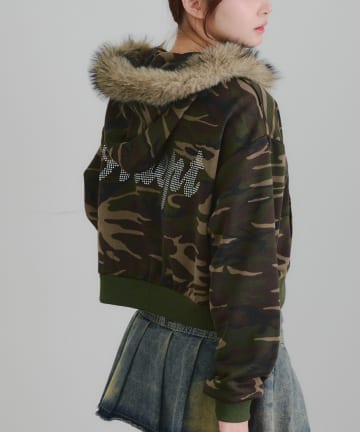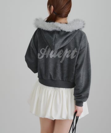 【RMAF】ラインストーンロゴファー取外しパーカー
