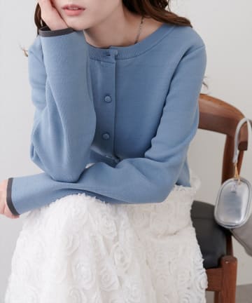 袖口配色ショート丈カーディガン