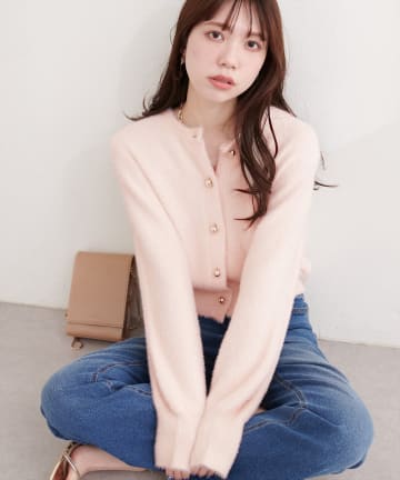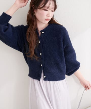 ころりん釦クルーネックシャギーカーディガン