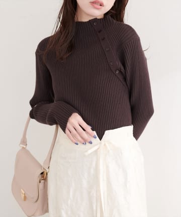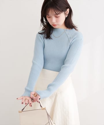 斜めボタンプチハイリブニット