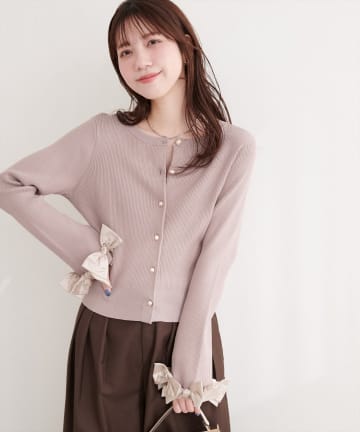 袖口リボンリブカーデ