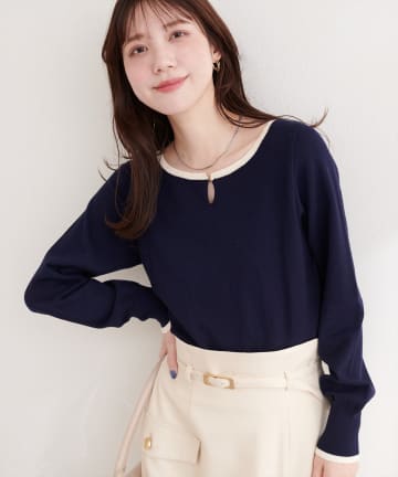 バー釦配色ニット