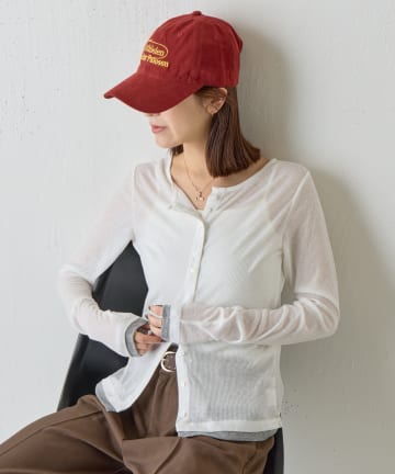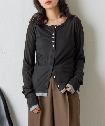 バイカラーシアーリブカーディガン