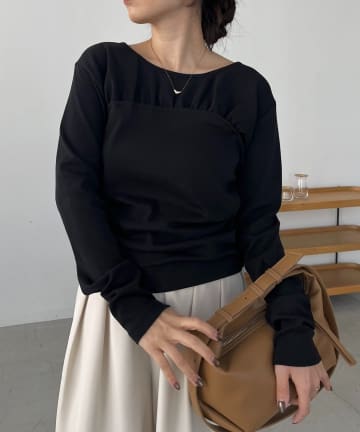 ドレープアシメネックTシャツ