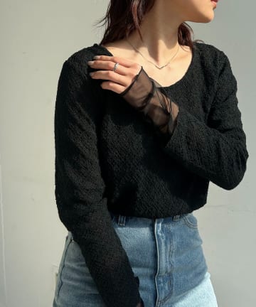 袖シアーレースT