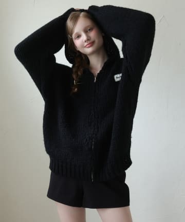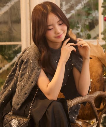 【Seemi.】パール付ケーブルニットカーディガン
