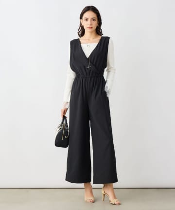 ウォッシャブルバックサテンサロペット