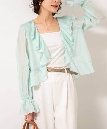 ウォッシャブルシアーラッフル羽織りブラウス