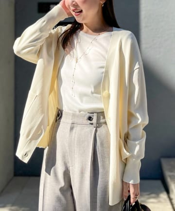 《アンサンブル対応》 《手洗い可能》マルチファンクションクルーネックカーディガン