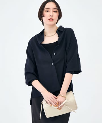 ウォッシャブルドレープポプリンバックプリーツシャツ