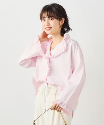 ウォッシャブルORGANICコットンフリルシャツブラウス